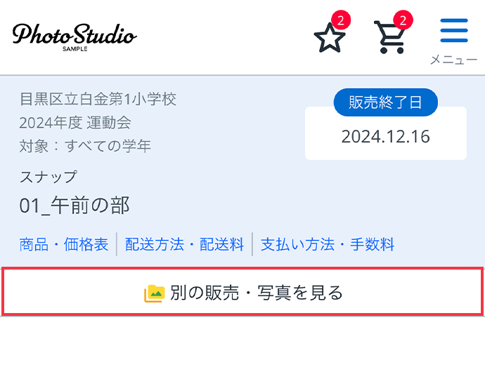 別の販売・写真を見る」を押すと、別グループの写真を閲覧できます。